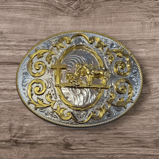 Christian Cowboy Belt Buckle 4 1/4″x3 1/8″ Silver Tone/Gold