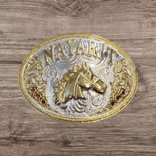 Cowboy Belt Buckle – Nayarit Horse Head 4.25″x3.25″ Silver Tone/Gold