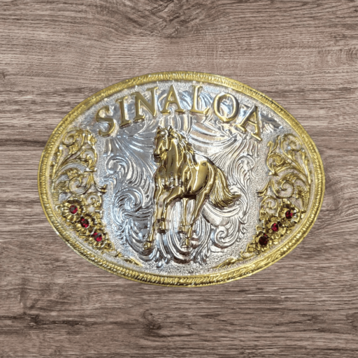 Cowboy Belt Buckle – Sinaloa Horse 4.25″x3.25″ Silver Tone/Gold
