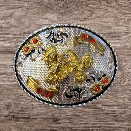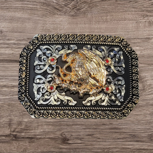 Cowboy Belt Buckle – Mexican Eagle 4.25″x3″ Gold Tone/Silver/Black