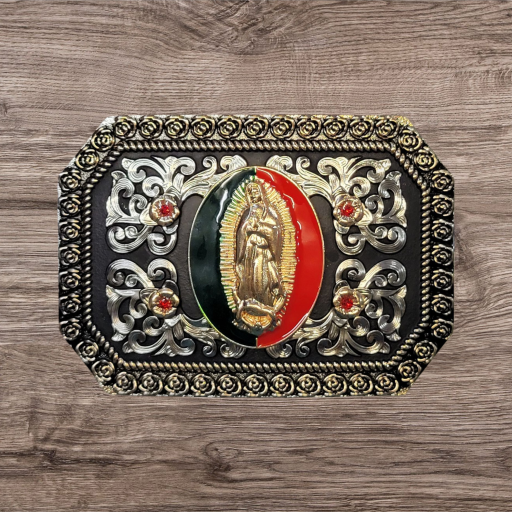 Cowboy Belt Buckle – Virgin Mary 4 1/8″x 3 1/8″ Silver/Black/Gold Tone