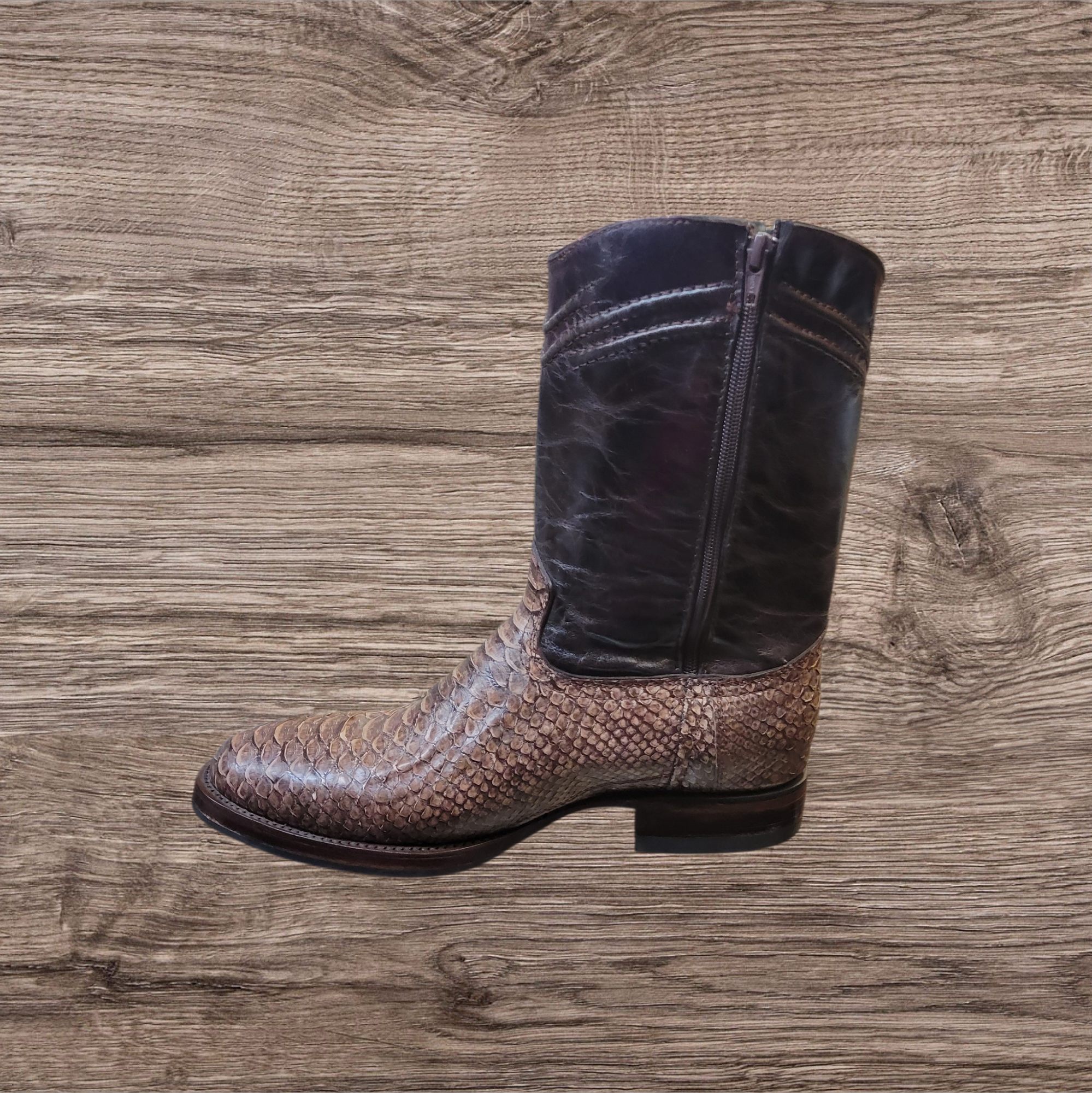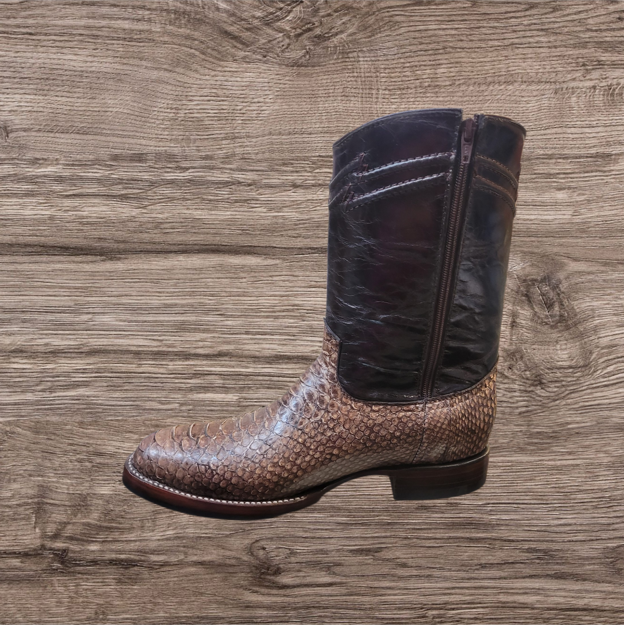 Toro Loco Men’s Genuine Python Round Toe Exotic Boots – Rustic Brown