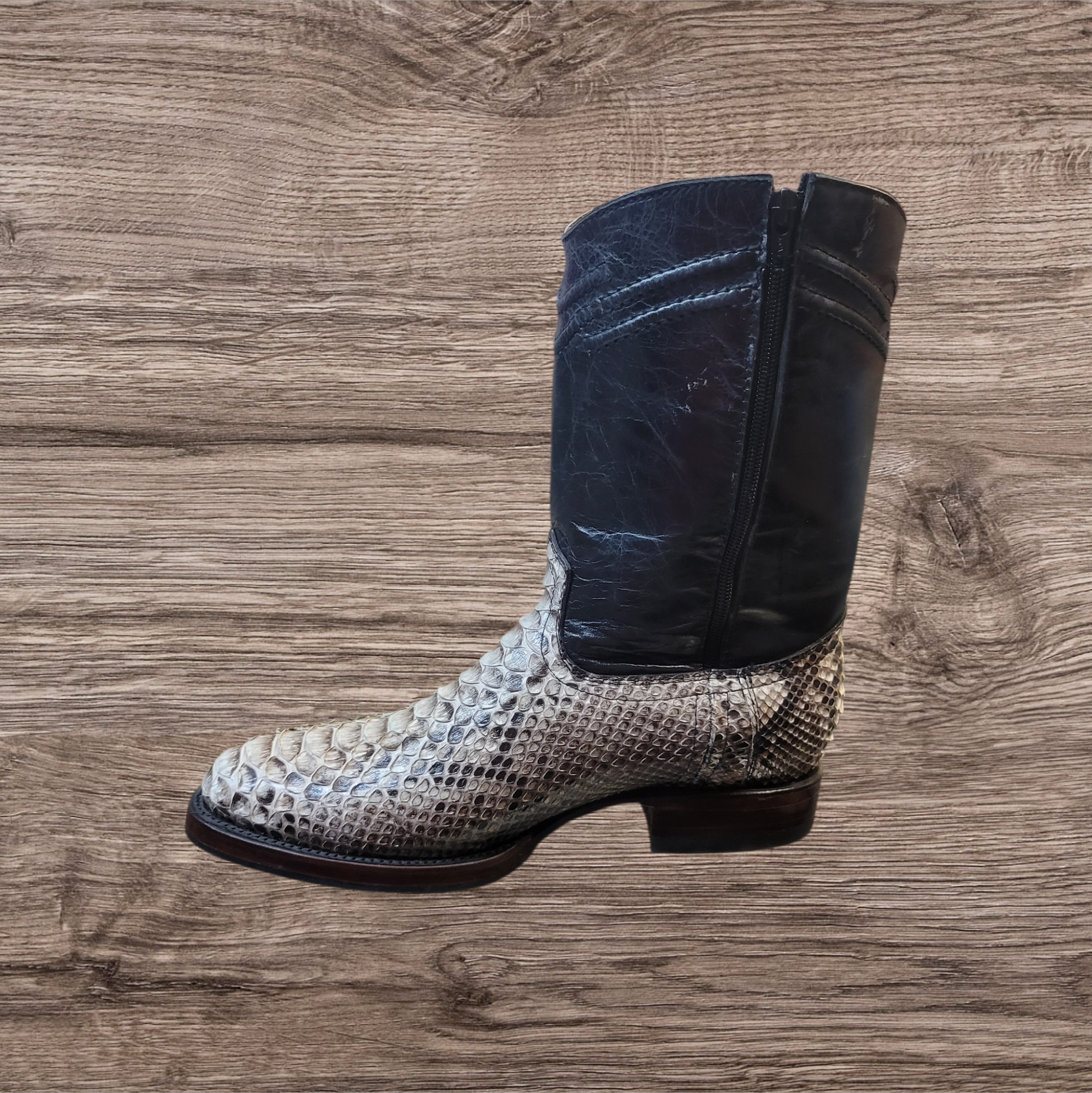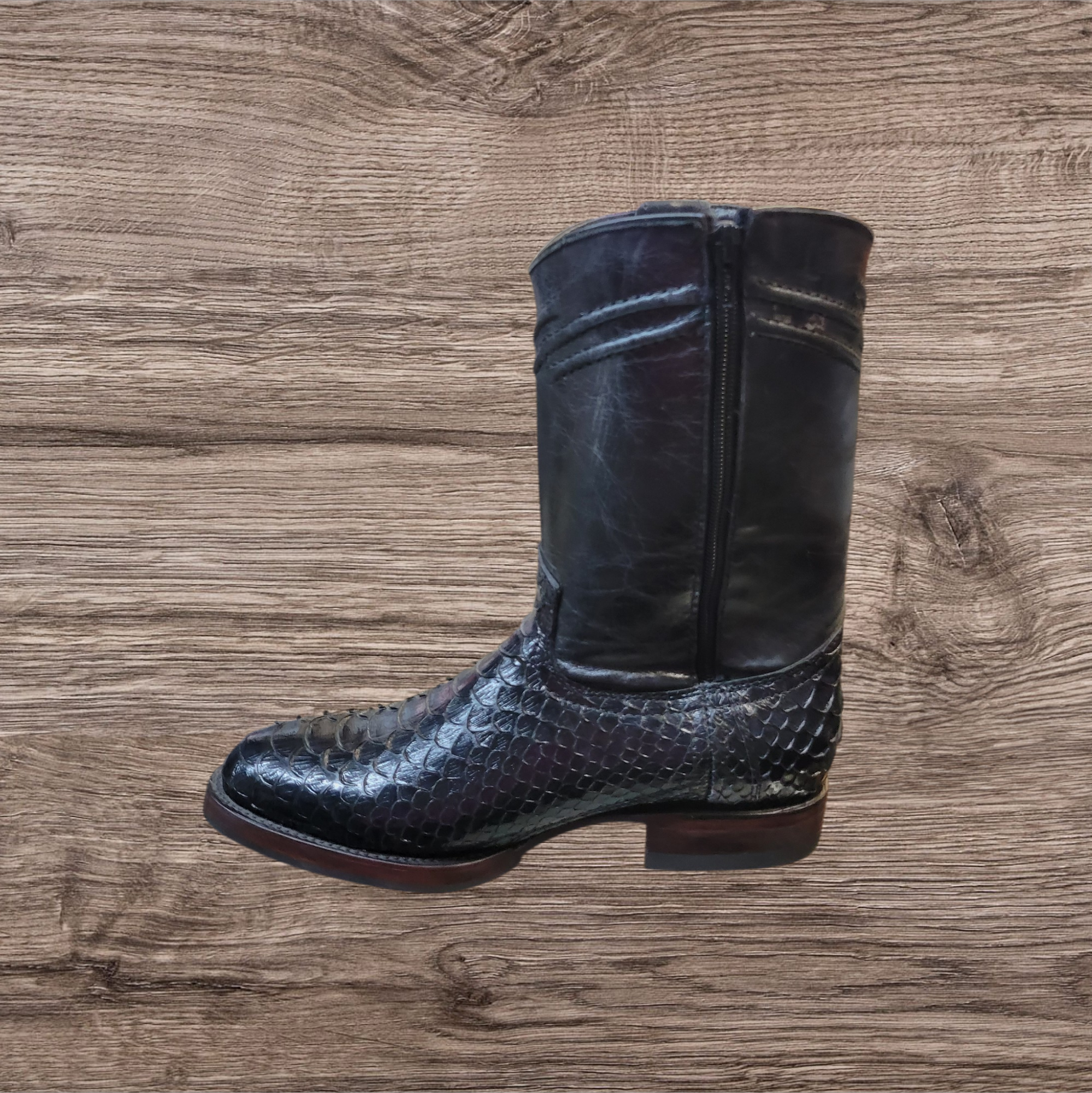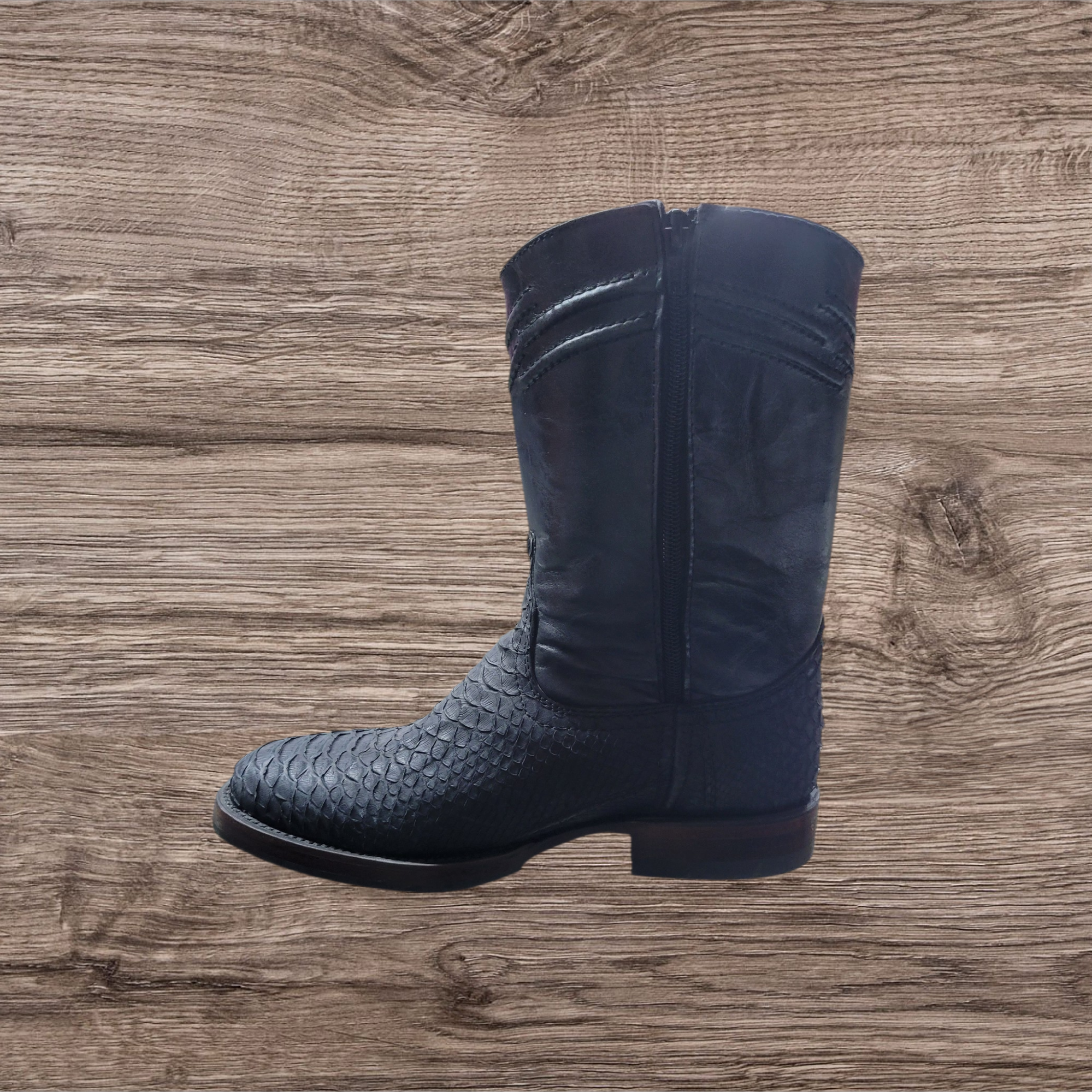 Toro Loco Men’s Genuine Python Round Toe Exotic Boots – Black