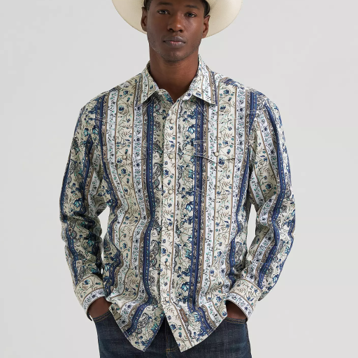 Wrangler Men’s Paisley Print Long Sleeve Button-Down Stretch Western Shirt 112374600