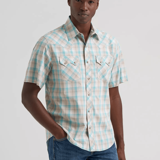 Men’s Wrangler Retro® Short Sleeve Sawtooth Pocket Western Snap Shirt 112374756