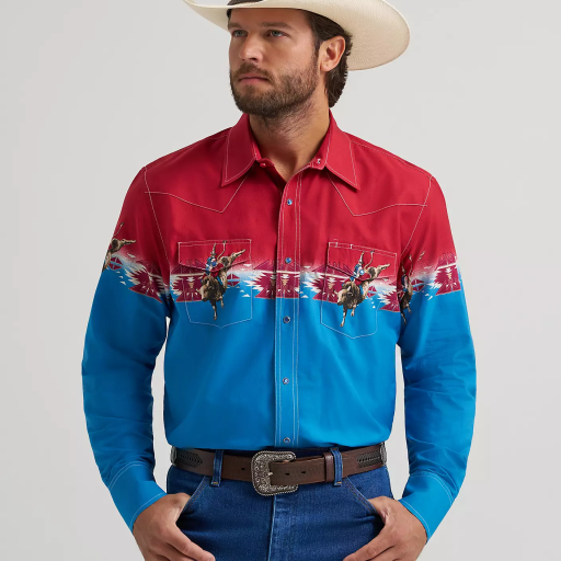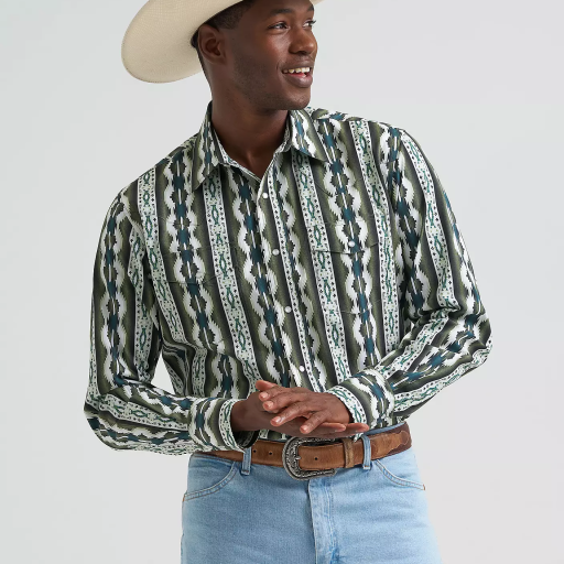 Men’s Wrangler Retro® Premium Long Sleeve Western Snap Printed Shirt 112378799