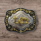 A stunning polished chrome buckle. Traditional Western design.