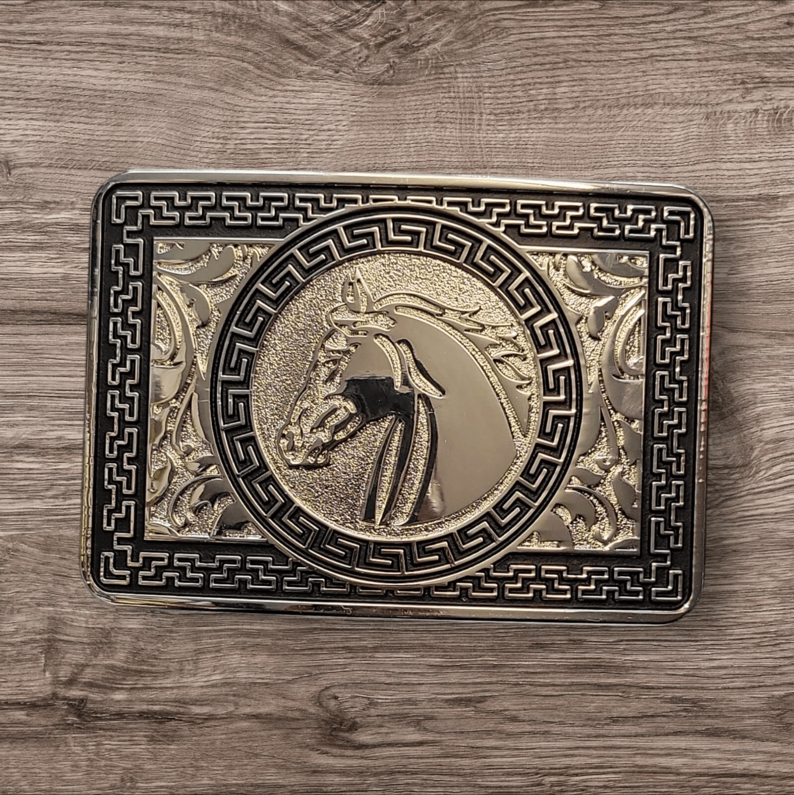 A stunning polished chrome buckle. Traditional Western design.