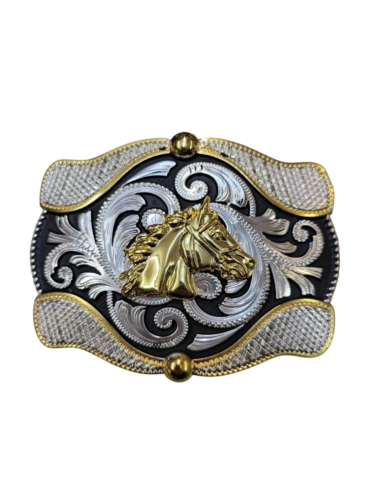 A stunning polished chrome buckle. Traditional Western design.