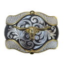 Cowboy Belt Buckle – Long Horn Bull Head 4.25″x3.25″ Black Tone/Gold/Silver