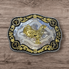 A stunning polished chrome buckle. Traditional Western design.