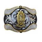 Cowboy Belt Buckle – Virgin Mary 4.25″x3.25″ Black Tone/Gold/Silver