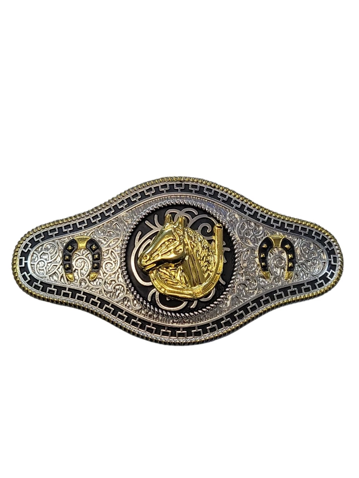 A stunning polished chrome buckle. Traditional Western design.