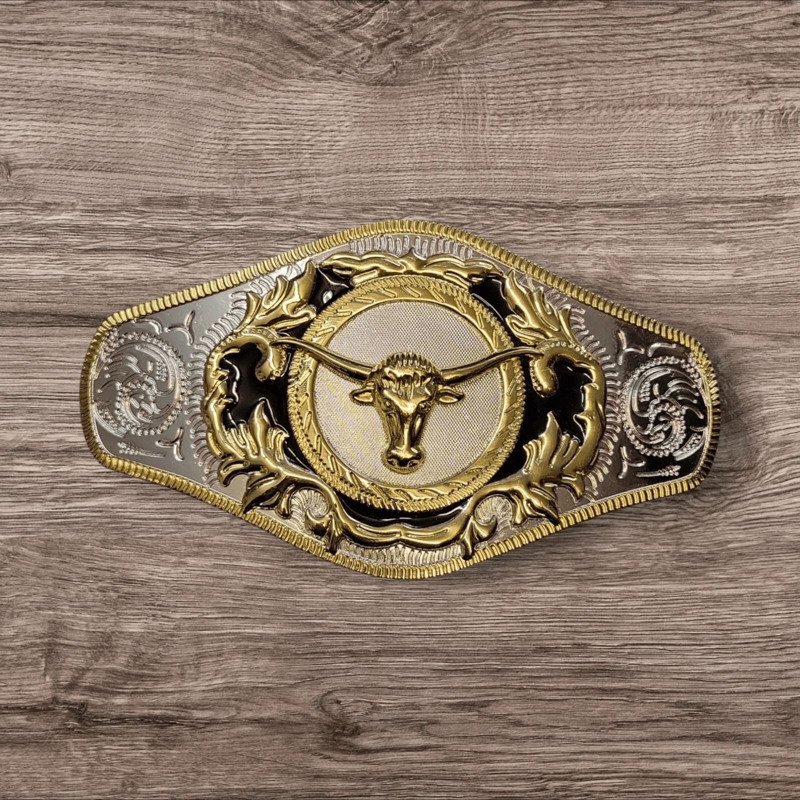 A stunning polished chrome buckle. Traditional Western design.
