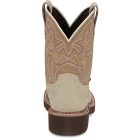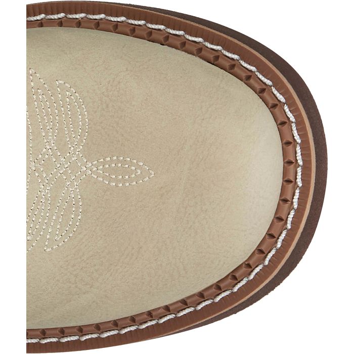- Tan vamp and brown shaft with western stitching