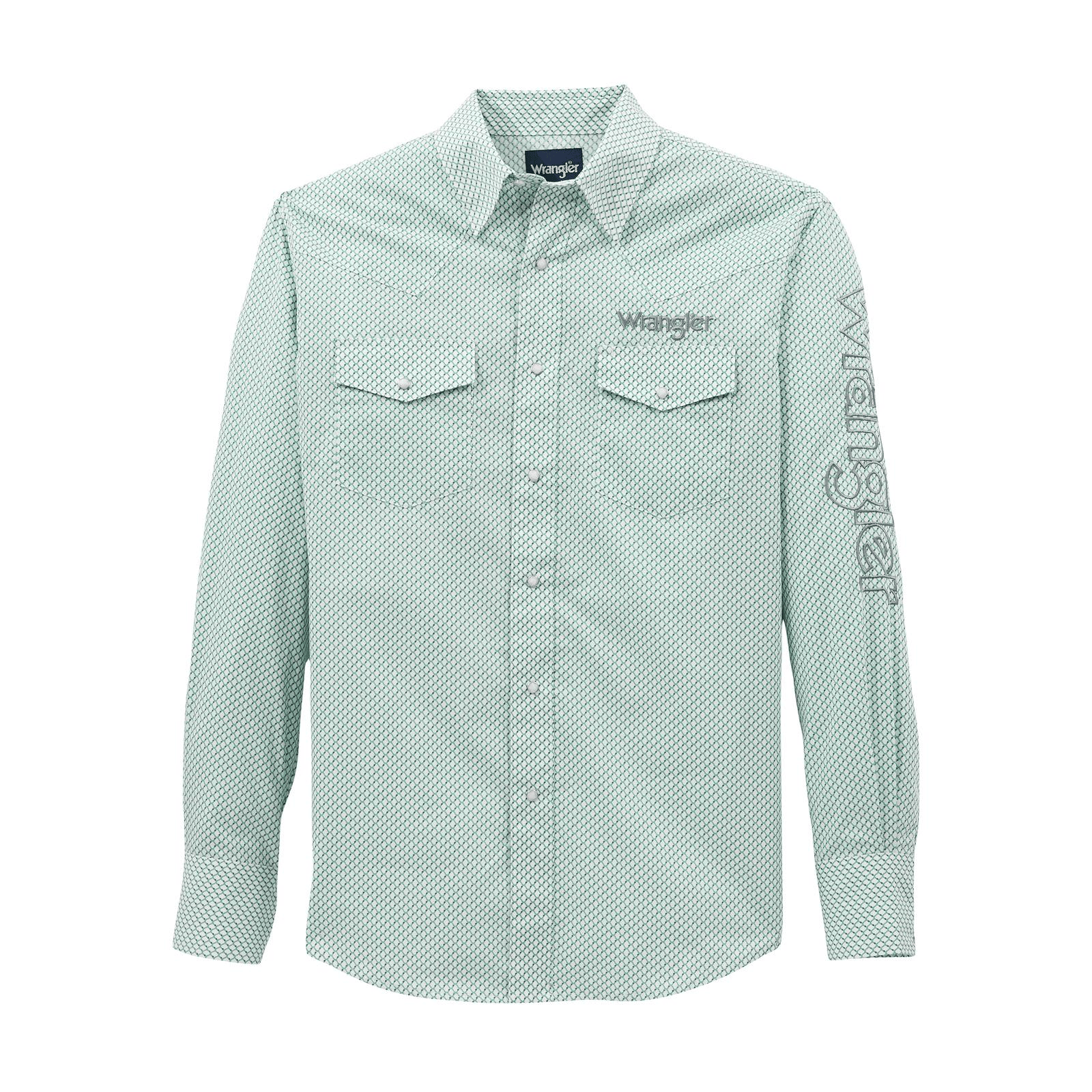 The Classic Logo Long Sleeve Snap Print Shirt features a traditional Western design with snap buttons and a bold logo print. Made for comfort and style, this shirt combines a timeless look with the durability you need for everyday wear.