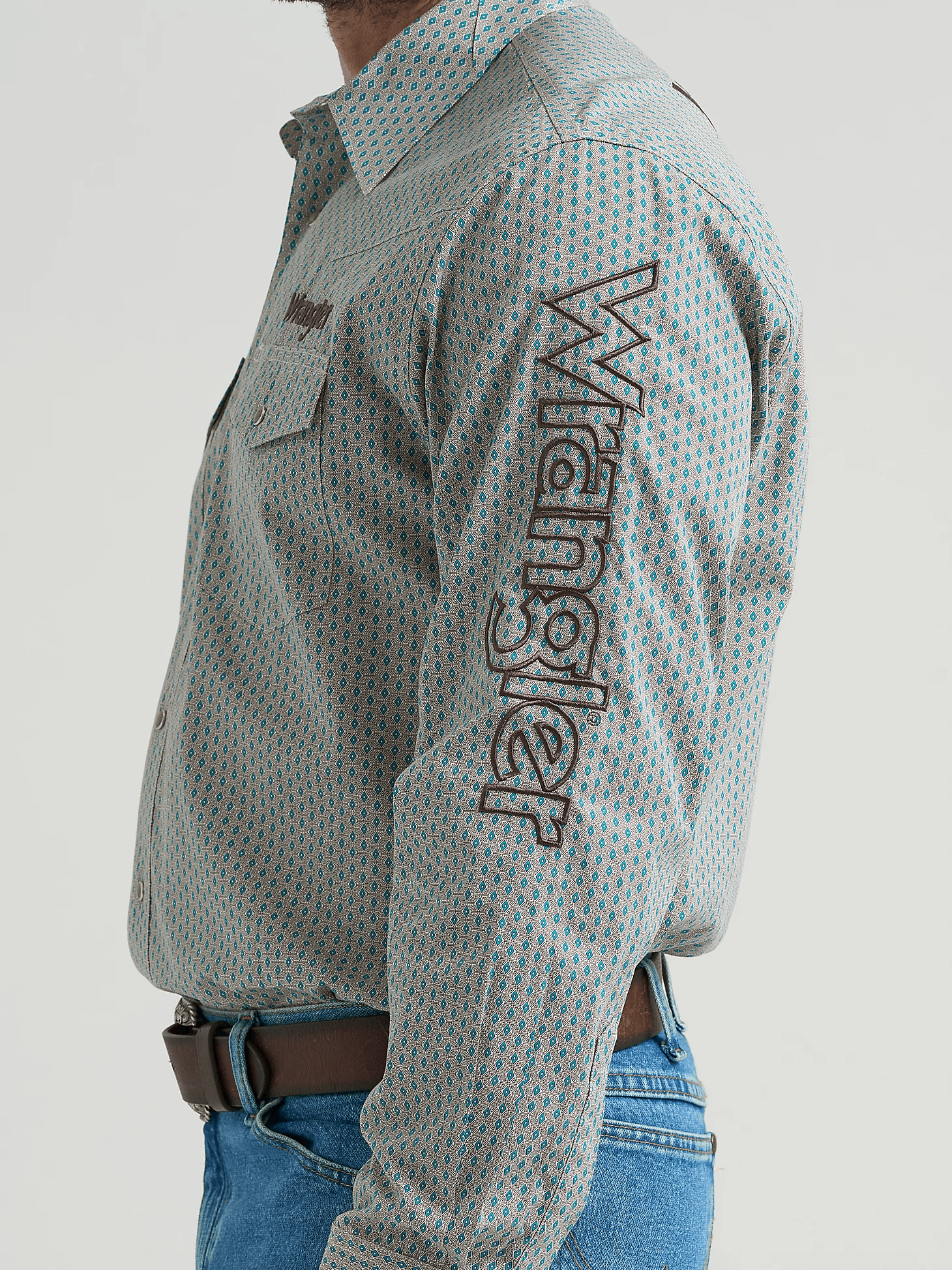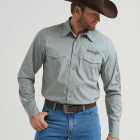 With no shortage of Western credibility, the Wrangler logo long sleeve snap shirt represents a true original in the American west. It comes with all the classic details you’ve come to know and trust about Wrangler snap shirts, including a spread collar, snap flap pockets with a one-inch pencil slot on the right, a pointed yokein the back, and a 100% cotton construction that’s perfect all year long. It also comes with the Wrangler logo above the right pocket, down the left sleeve, and across the back.