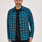 Paying tribute to our Western roots, the men’s Wrangler Retro® long-sleeve sawtooth snap pocket western shirt gives the classic style you know a modern look and feel. It comes with all the same details you love, including a spread collar, pointed yokes, and two sawtooth snap flap pockets with embroidery to add a bold element to every outfit. Plus, it features a modern fit and it’s crafted from cotton for comfort and long-lasting durability, no matter how often you wear it. Wear it with a pair of Wrangler Retro bootcut jeans to complete the look for any occasion.