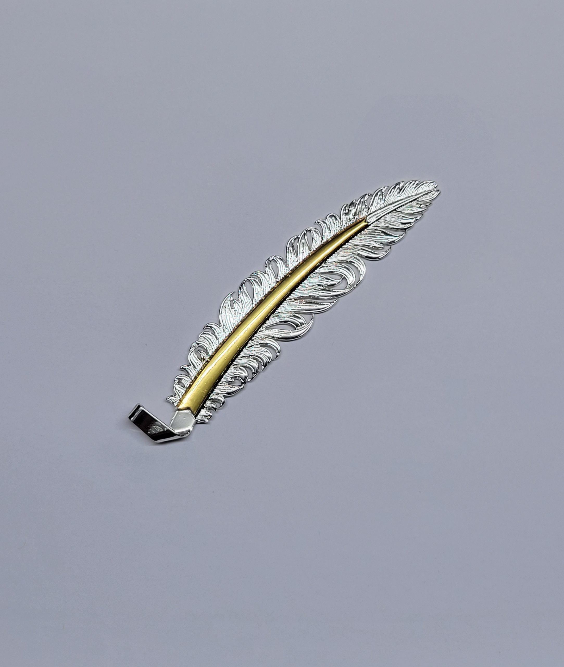 Finished in a bright Chrome Silver/Gold Finish this feather was engraved to mimic the beauty and irregularity of a natural feather