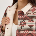 Shake off the cold in the women’s Wrangler Retro® sherpa-lined jacquard southwestern print jacket. Inspired by our roots, this essential layer for the season ahead comes with an eye-catching print in a cool palette with a southwestern feel. The body is crafted from 100% cotton jaquard for comfort and solid construction that’s easy to break in over time. The ultra-soft lining is crafted from cozy sherpa for lightweight warmth when the weather cools down. This jacket’s also finished with pointed yokes at the shoulders, a fancy yoke in the back, a sherpa collar, two lower patch pockets to keep your hands warm, and branded hardware.