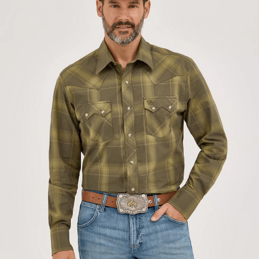 Men’s Wrangler Retro® Long Sleeve Sawtooth Snap Pocket Western Shirt – 112369543
